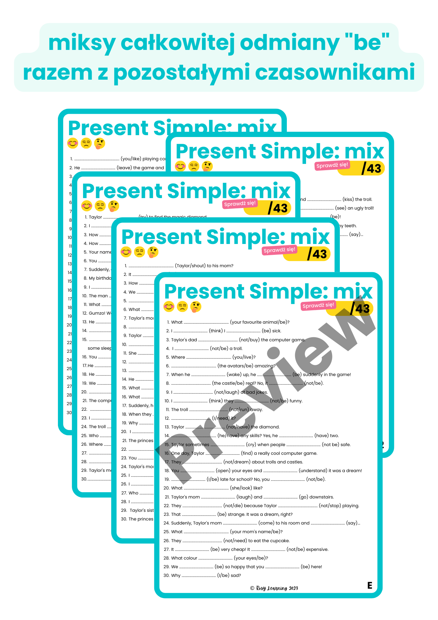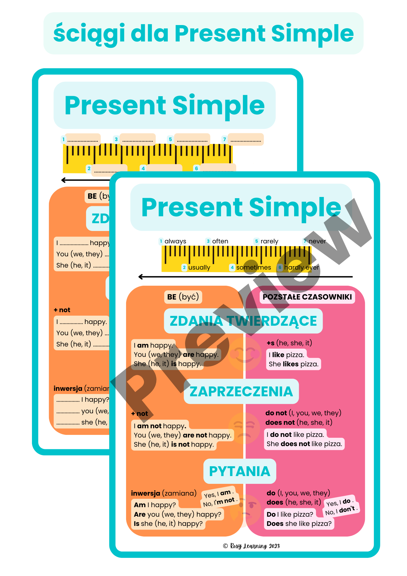 - ściągę na Present Simple,