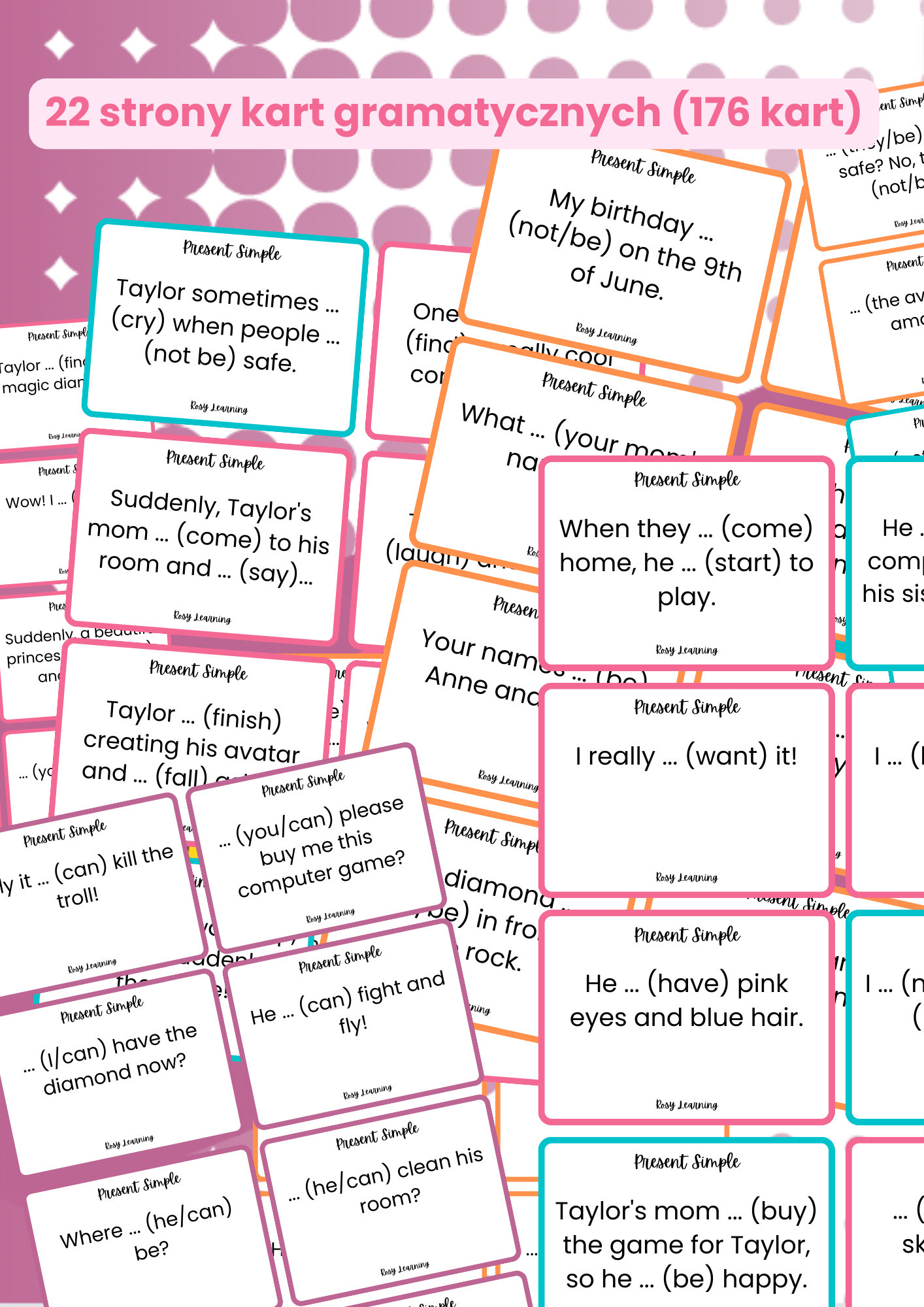 - tło do wydrukowania na tyle kart gramatycznych.